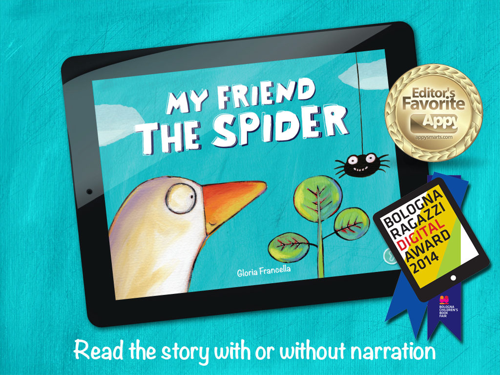 My Friend The Spider (Amico Ragnolo) was shortlisted for the BOLOGNA RAGAZZI DIGITAL AWARDS, a spotlight on innovation and excellence in children’s digital publishing, awarded by the Bologna Children’s Book Fair.